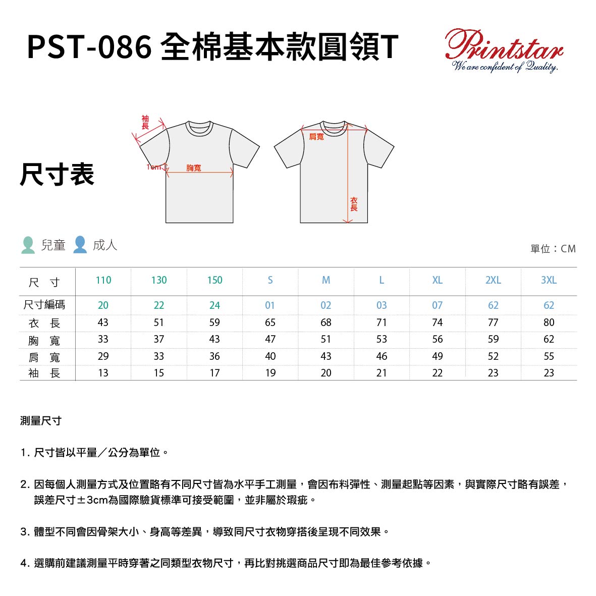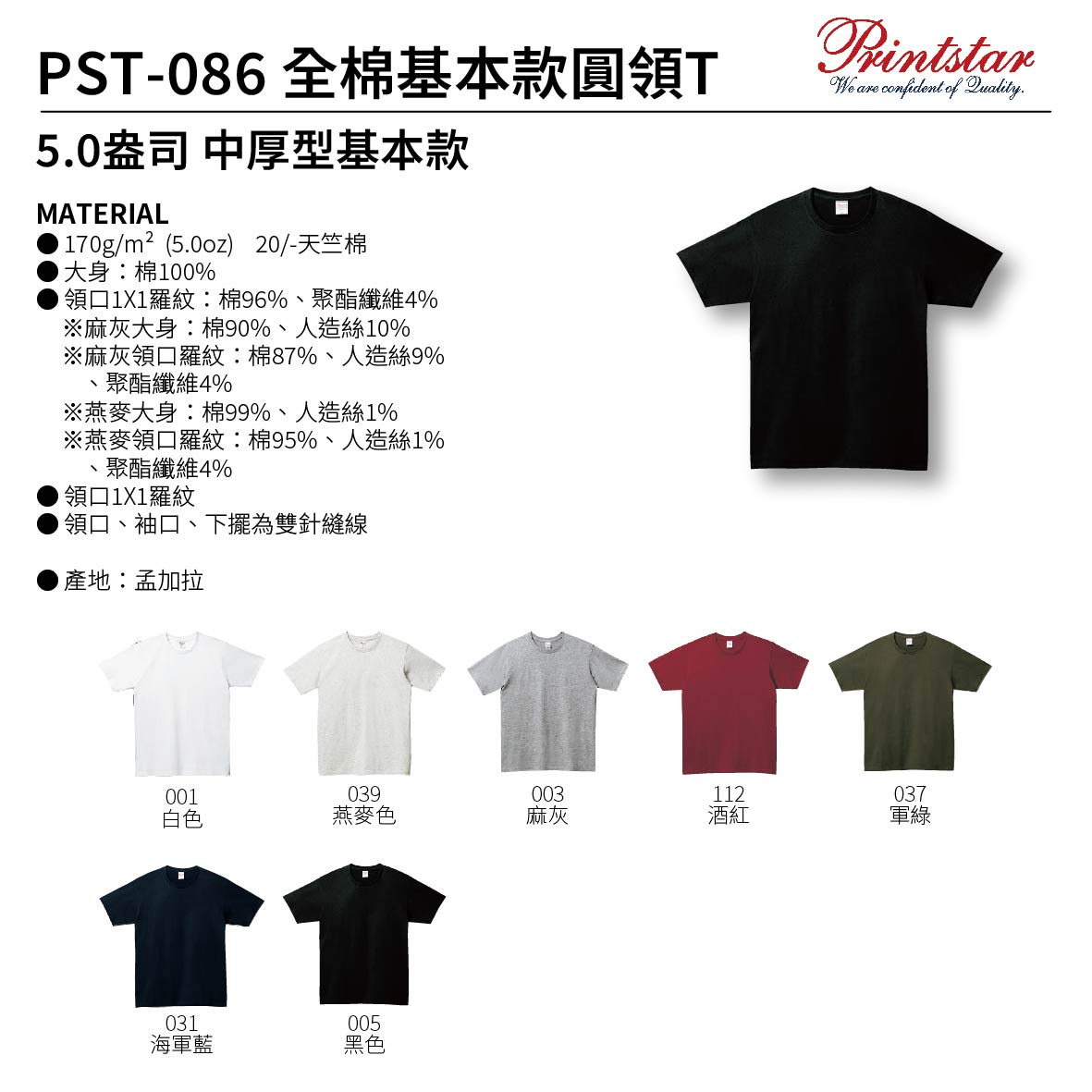 Printstar│5.0oz全棉基本款圓領T恤│PST-086