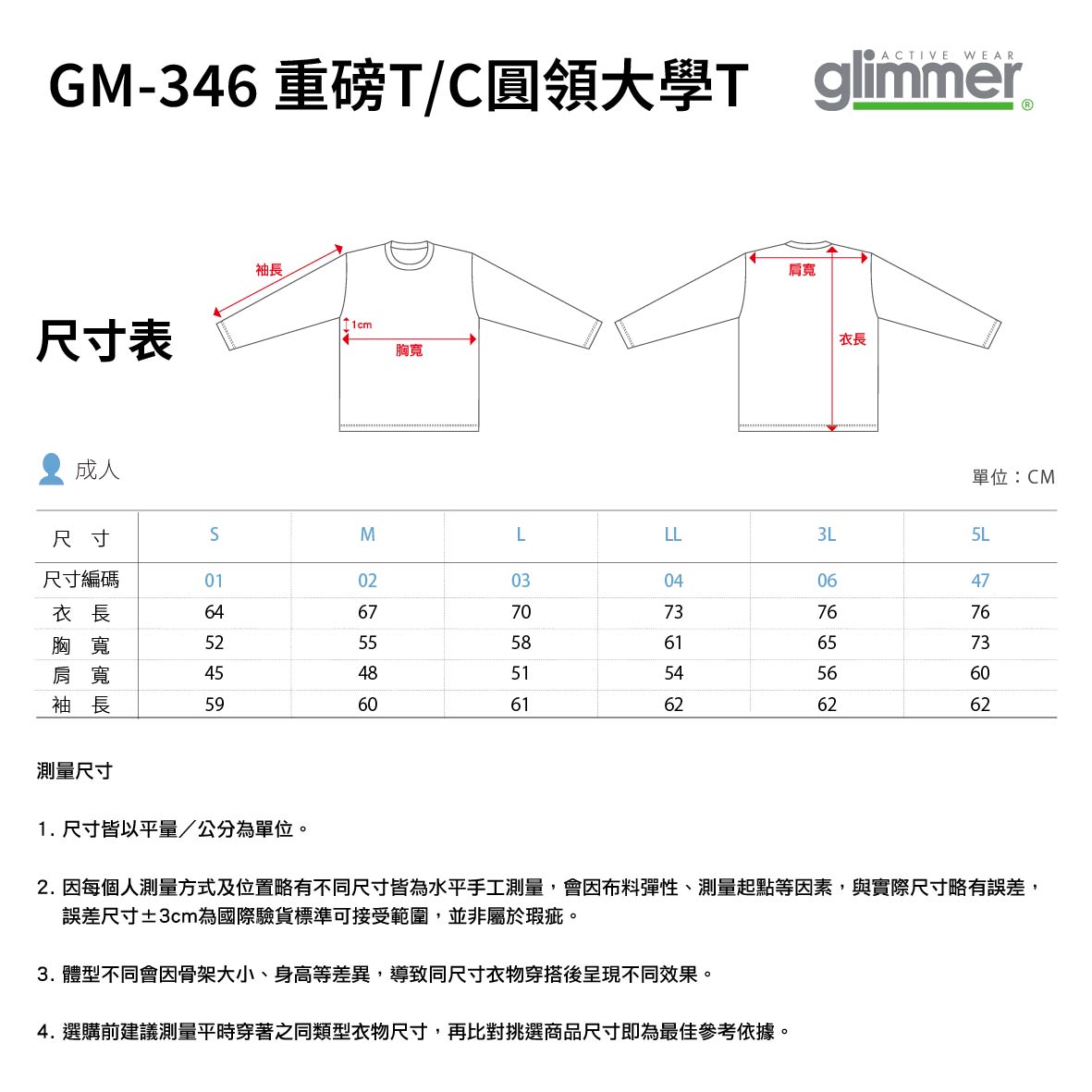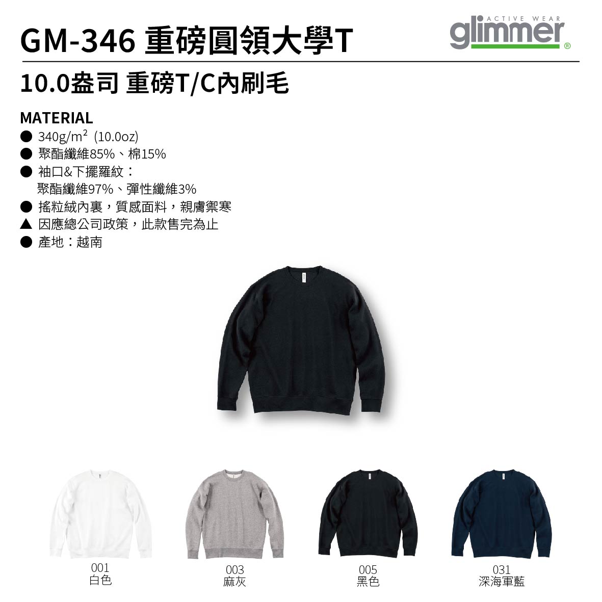 ※本商品為素色商品,不含印刷。若要客製印刷請聯絡客服! ★ GM-346 ★ 10.0oz 重磅T/C內刷毛圓領大學T ★ 聚酯纖維85%、棉15% ★ 五件起訂(貼身衣物如未確單恕不接受套量) ★ 客製化費用另計,歡迎來圖詢問 ★ 訂購前請詳閱訂購流程及注意事項 ★ 同款式衣服(空衣不含加工費用)不滿5000元需自付運費