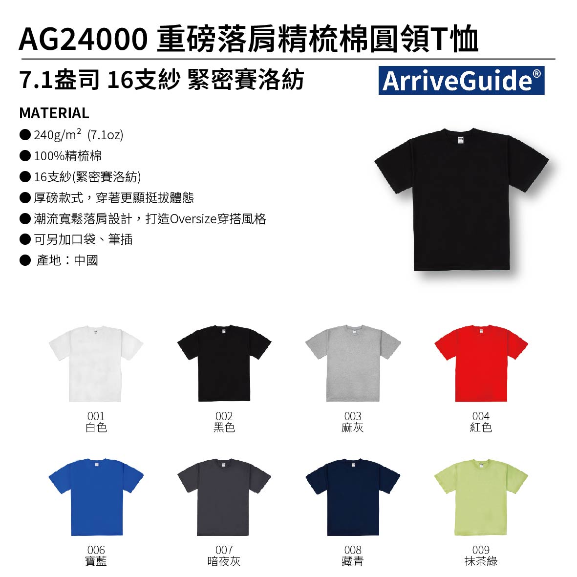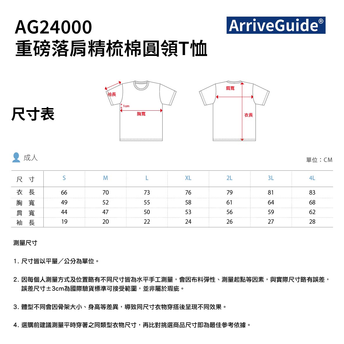 ArriveGuide│7.1oz 緊密賽洛紡重磅落肩精梳棉圓領T恤│成人│AG24000
