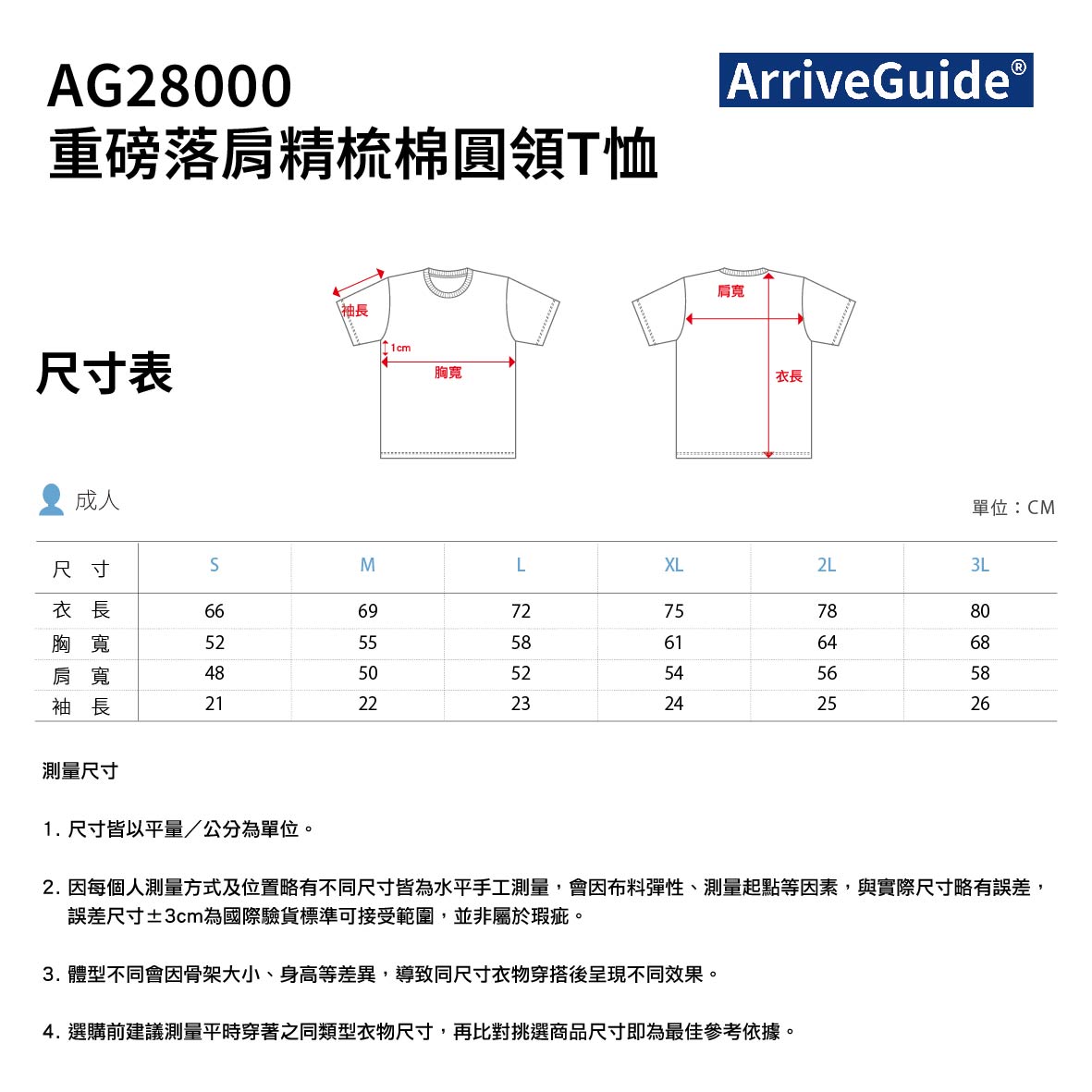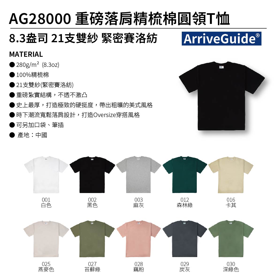 ArriveGuide│8.3oz 緊密賽洛紡重磅落肩精梳棉圓領T恤│成人│AG28000