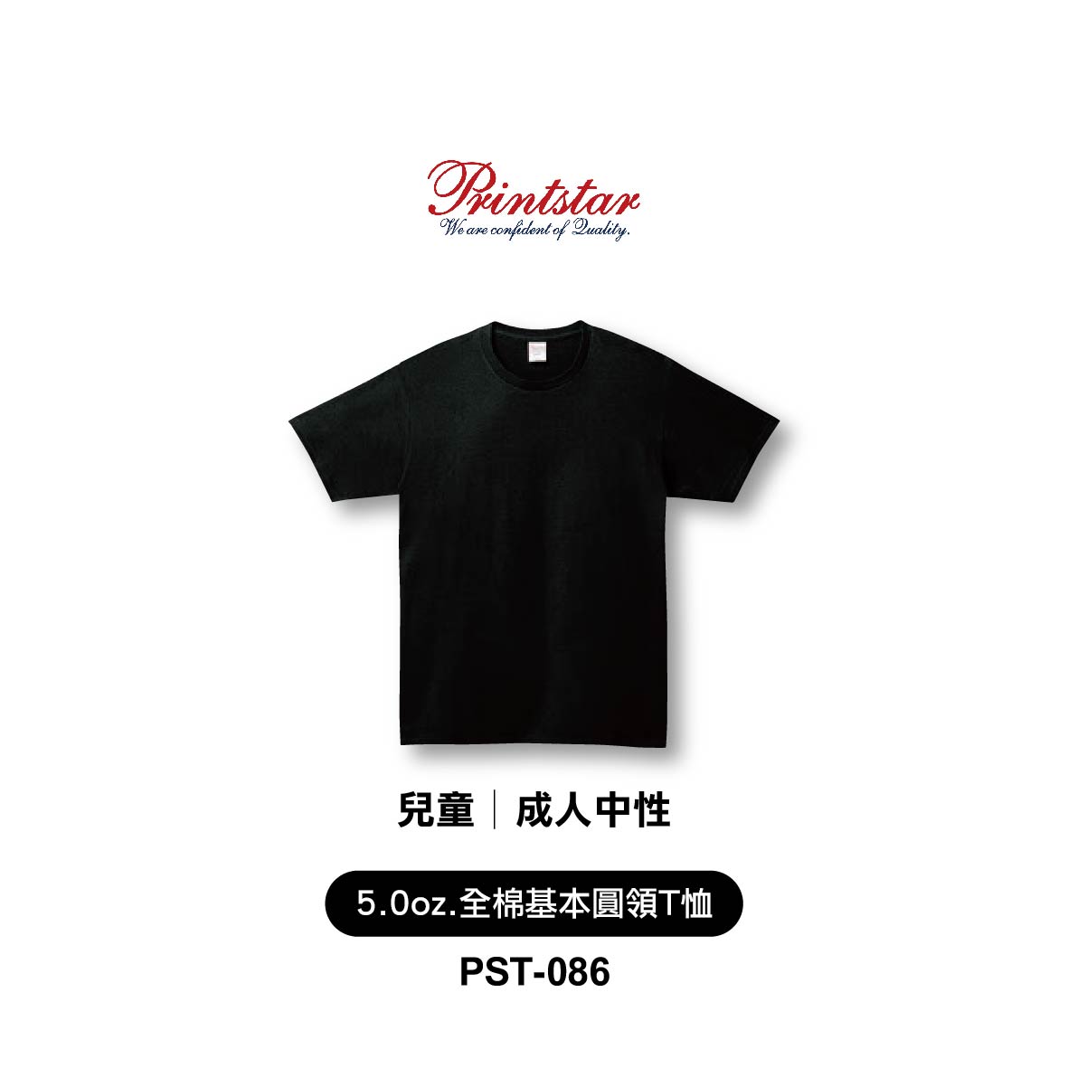 Printstar│5.0oz全棉基本款圓領T恤│PST-086