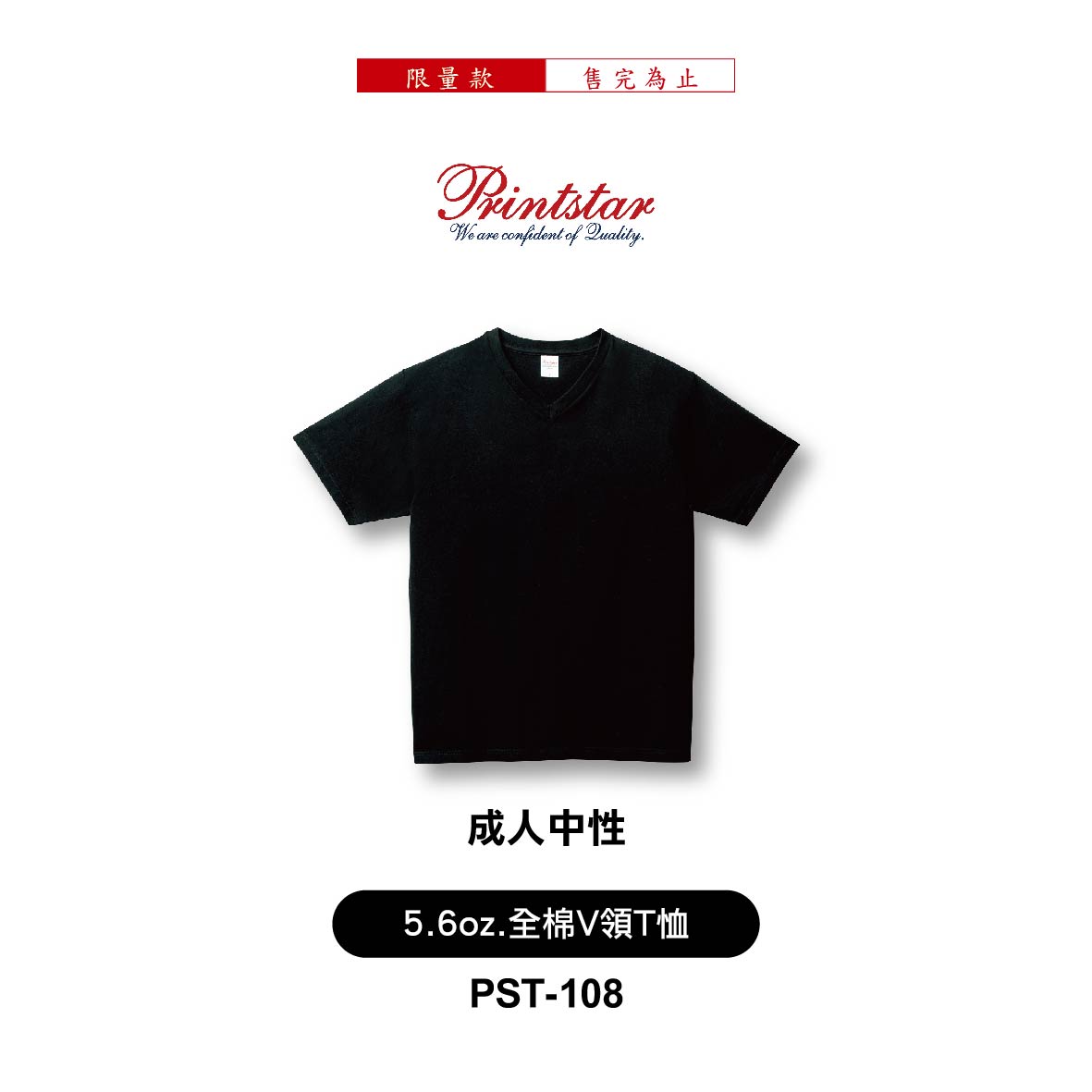 Printstar│5.6oz.全棉V領T恤│PST-108