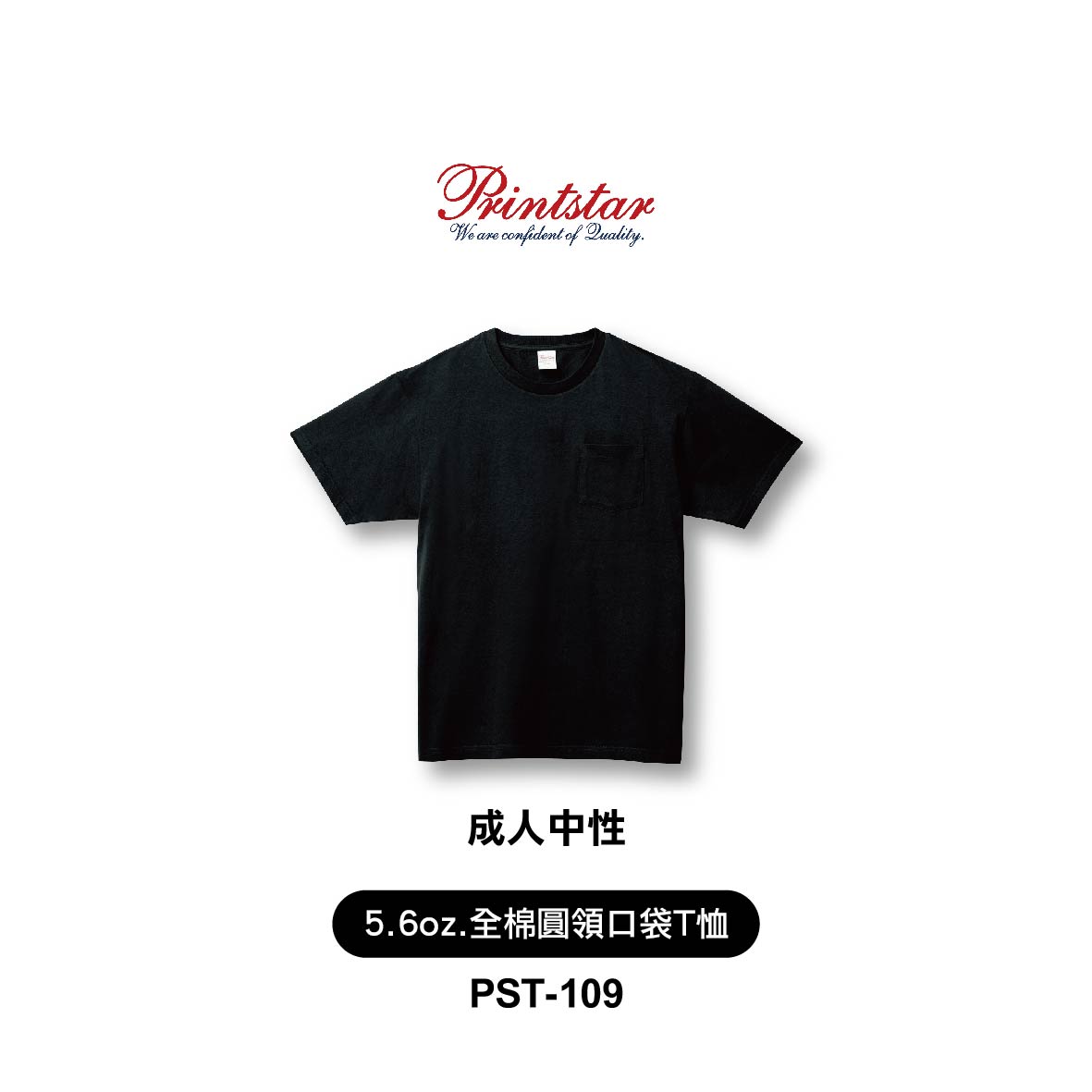 Printstar│5.6oz全棉圓領口袋T恤│PST-109