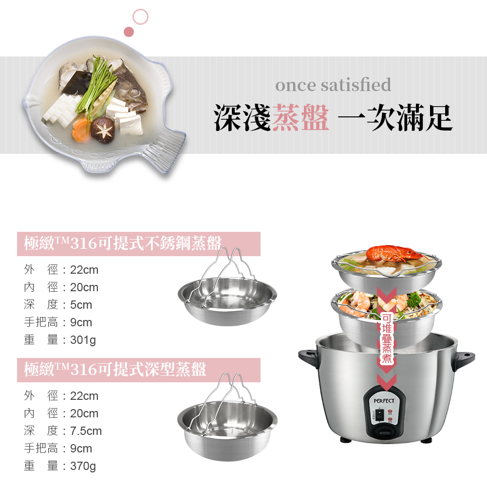 PERFECT 理想 極緻316可提式不銹鋼蒸盤22cm 【KH_85122_1】臺灣製造