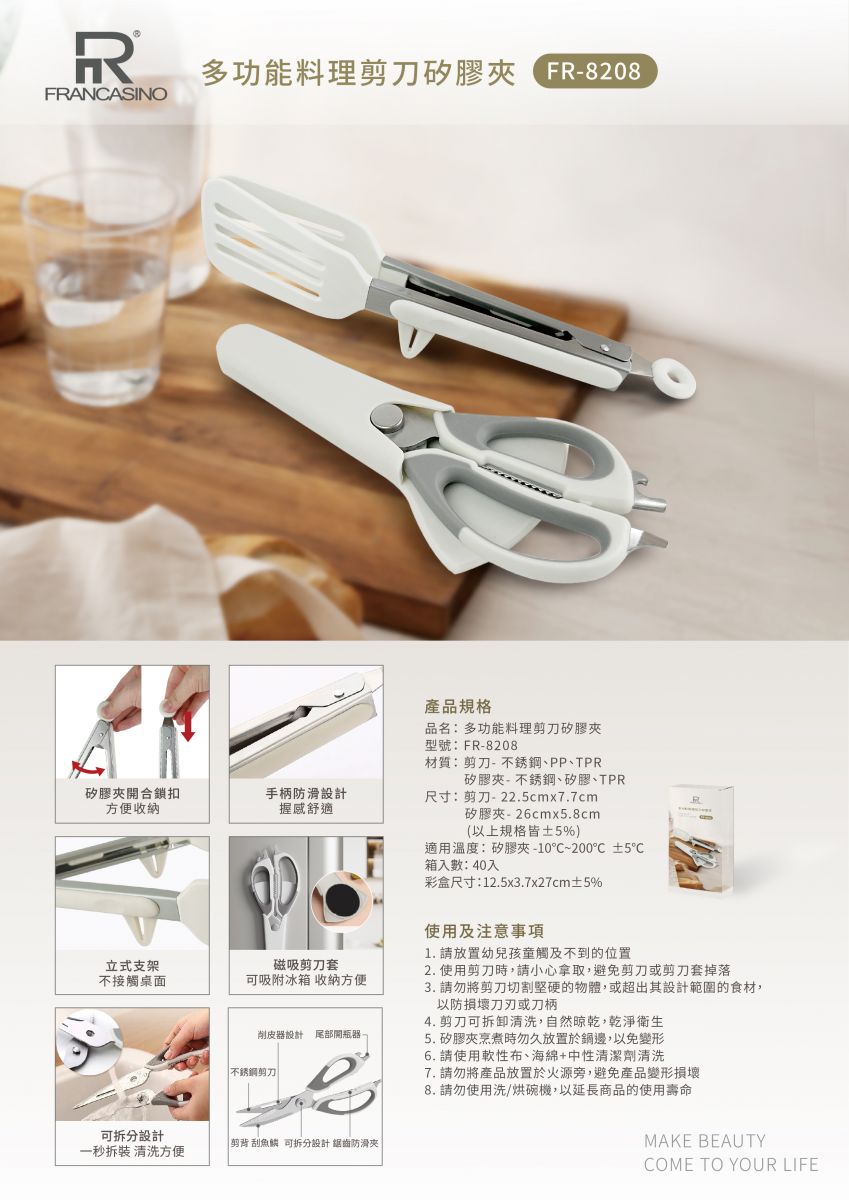 FRANCASINO 多功能料理剪刀矽膠夾 FR-8208
