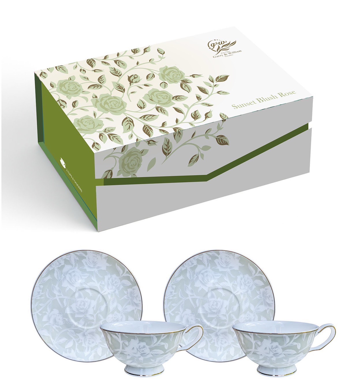 霧翠玫瑰-淺綠咖啡杯組(GW-1701)