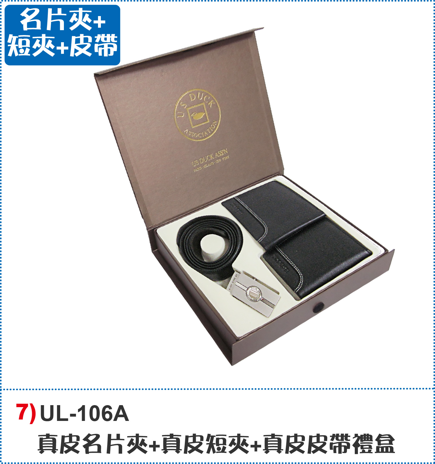 UL-107A US DUCK 真皮短夾+真皮皮帶禮盒