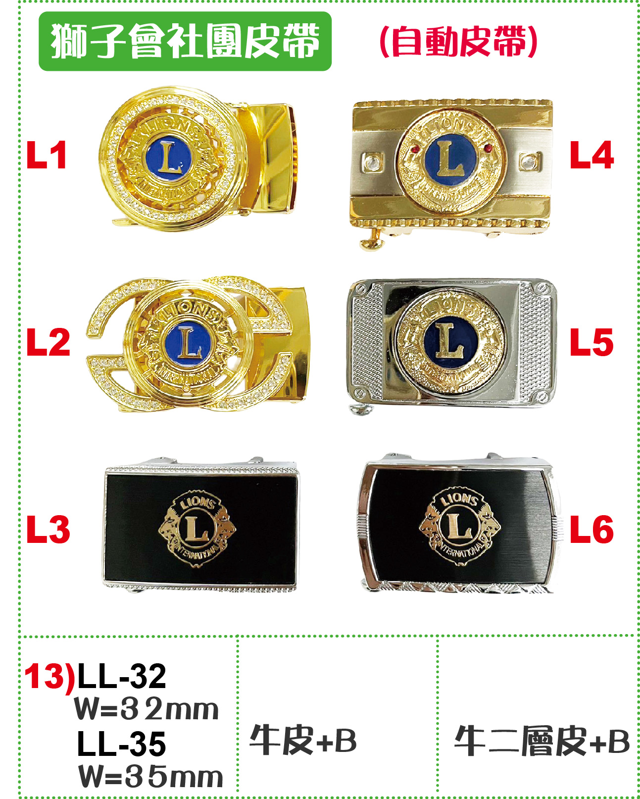 LL-32B /LL-32B 獅子會皮帶(自動扣)--牛二層皮