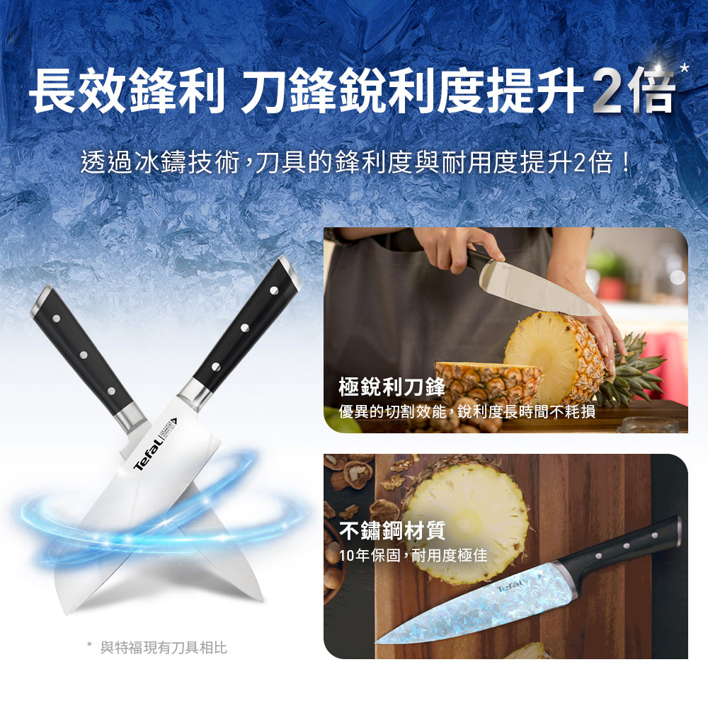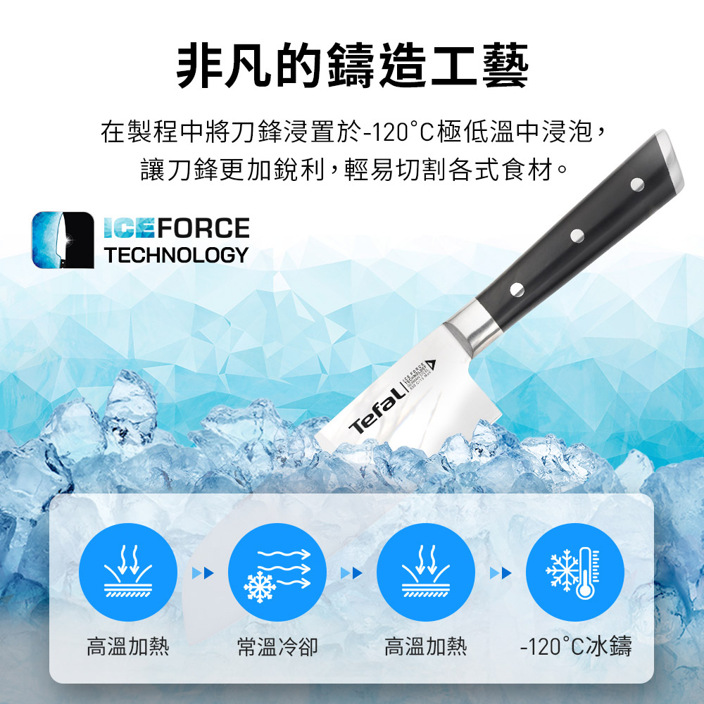 Tefal法國特福Ice Force冰鑄系列刀具,非凡的鑄造工藝,讓刀鋒銳利度提升2倍!