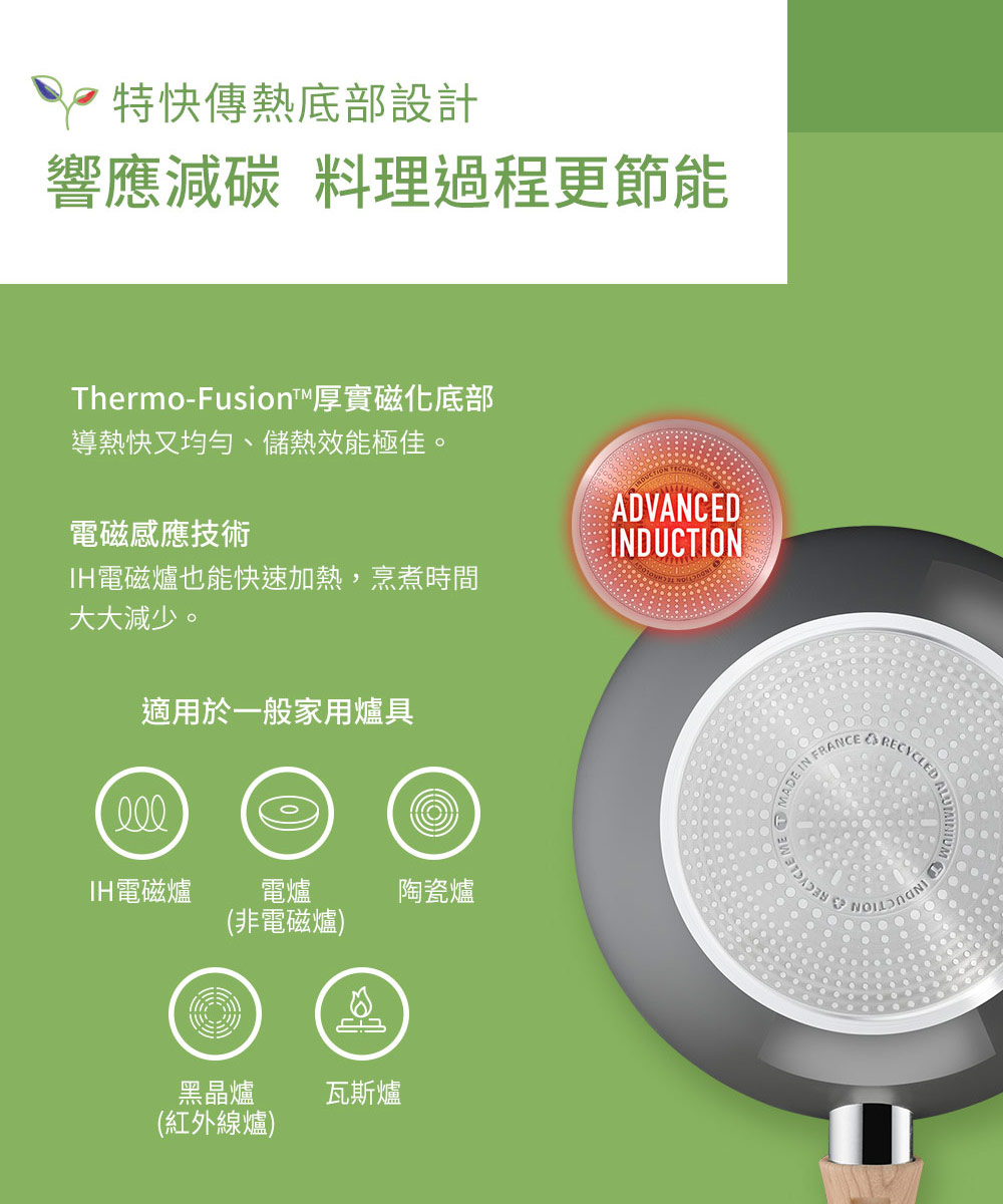 ◆100%再生鋁合金鍋身,減少90%能源消耗