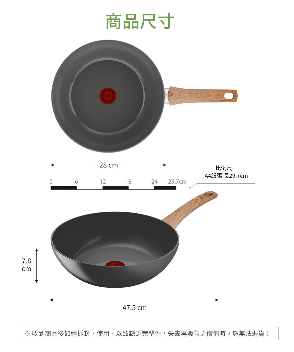 ◆尺寸:鍋具口徑28cm/鍋底直徑18cm/含鍋把總長47.5cm/鍋深7.8cm