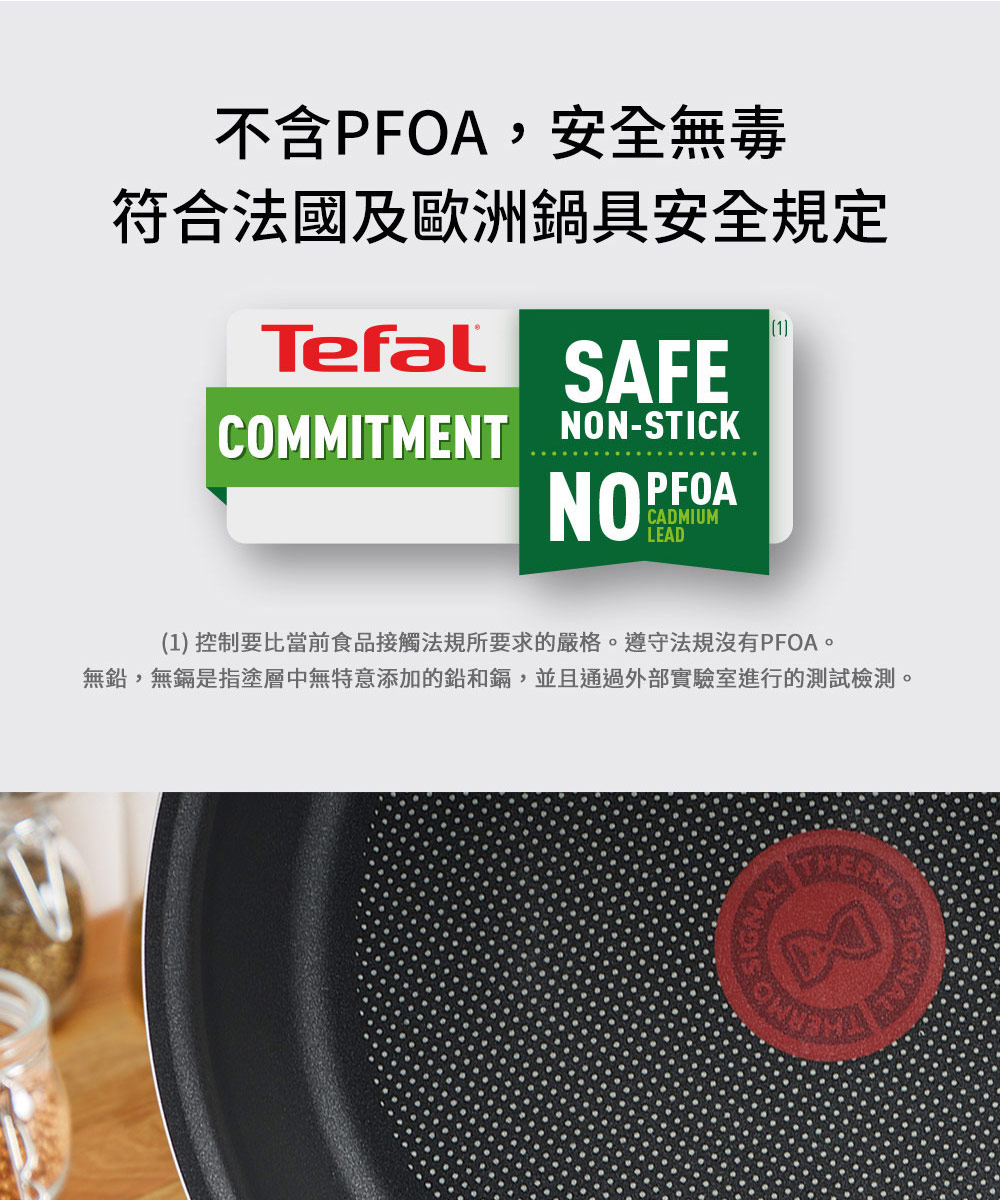 ◆不含PFOA、重金屬,安全無毒,經法國國家認可機構檢定,符合法國及歐洲鍋具安全規定。
