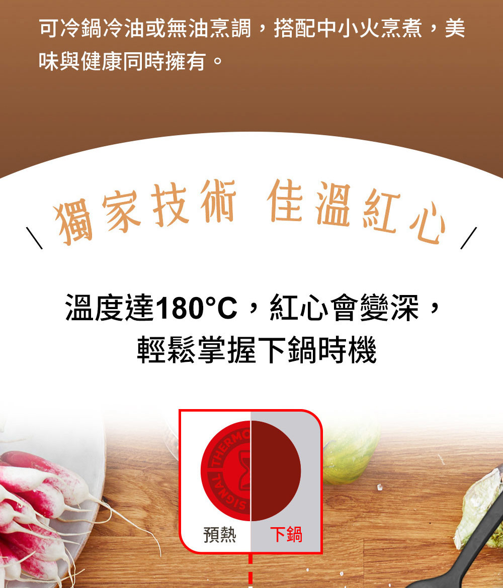 ◆獨家佳溫紅心技術,180°C時紅心會改變顏色,輕鬆掌握下鍋時機。