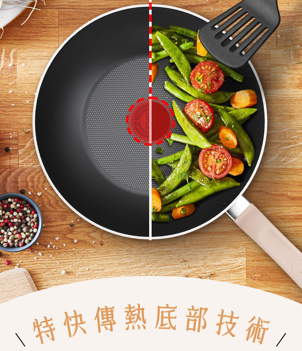 4.特福不沾鍋因鍋底設計具有高傳熱功能,建議用中小火烹調即可,節省能源又可避免營養流失,更能減少油煙的產生。