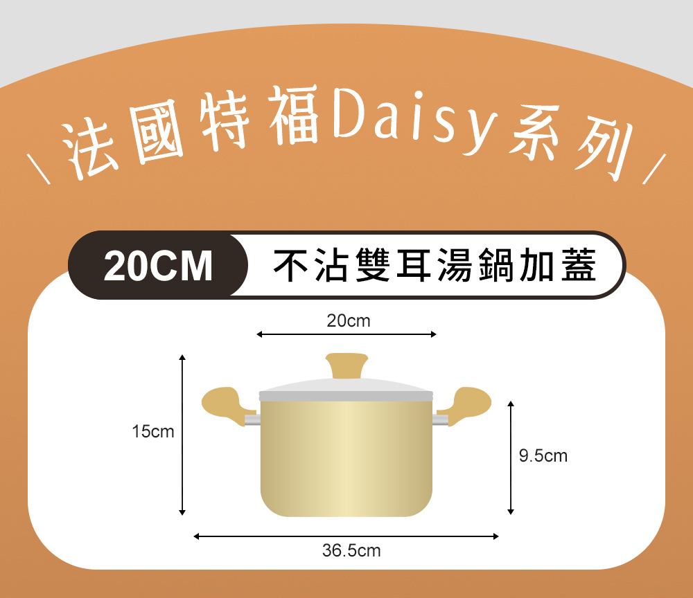 ◆尺寸:鍋具口徑20cm/總長36.5cm/底部直徑18cm/鍋深9.5cm/含蓋高度15cm
