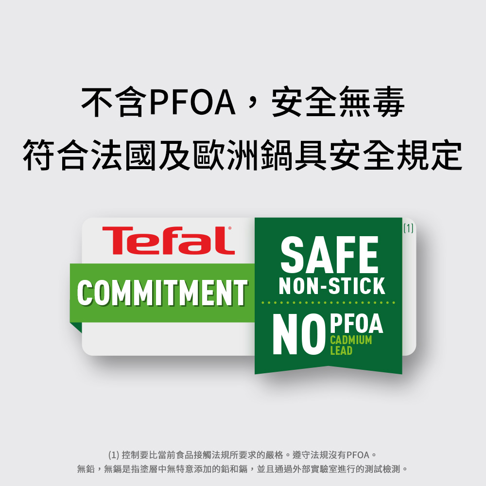 ◆不含PFOA、重金屬,安全無毒,經法國國家認可機構檢定,符合法國及歐洲鍋具安全規定。