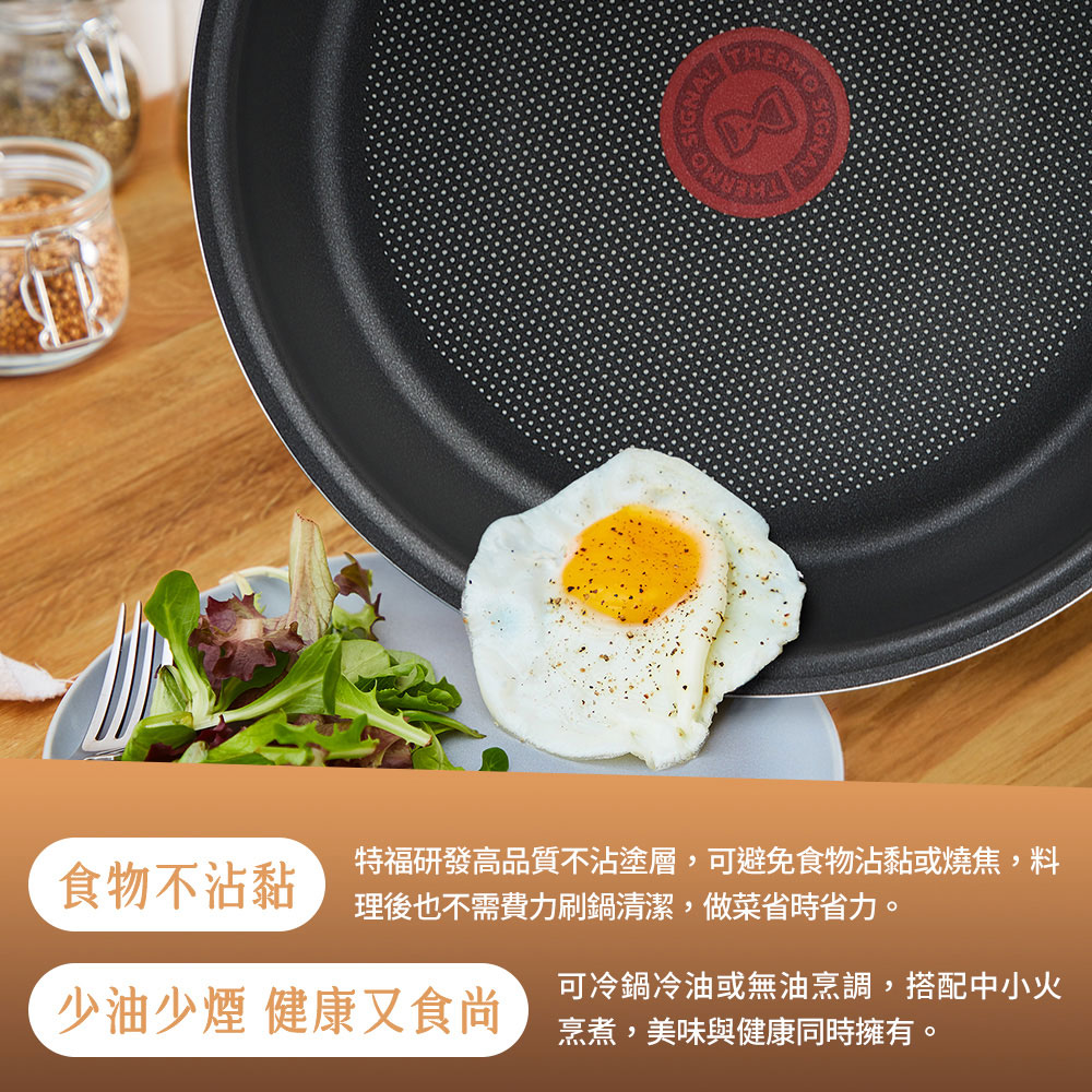 ◆TITANIUM鈦合金強化塗層,法國特福獨家研發塗層,添加鈦合金微粒子,優異的耐磨、抗刮性,不沾效果佳又好清洗。