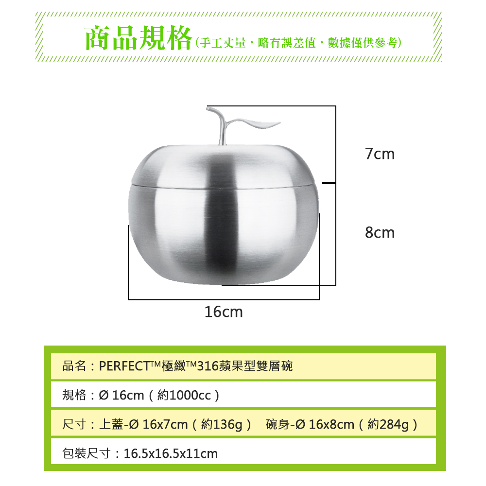 PERFECT 理想 【IKH_82516】 PERFECT 理想 極緻316蘋果型雙層碗 【IKH_82516】台灣製造