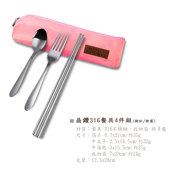 PERFECT 理想 【IKH_86304】 PERFECT 理想 晶鑽316餐具四件組(兩色可選) 【IKH_86304】台灣製造