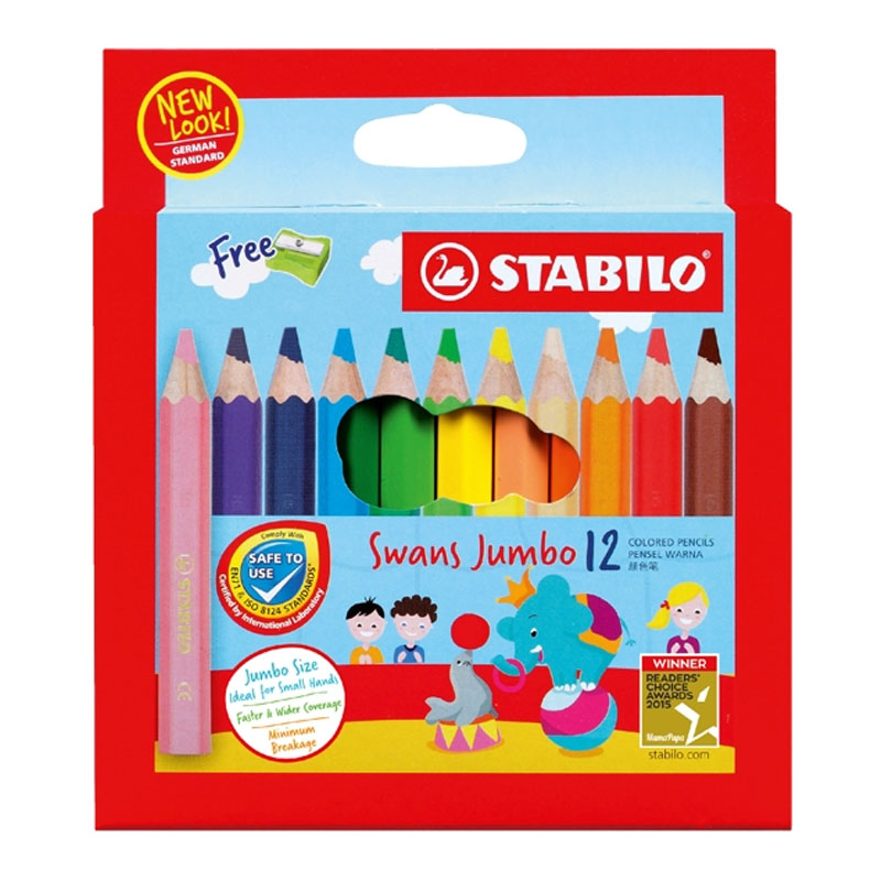 STABILO 思筆樂 Swans Jumbo 特大油性色鉛筆短版12色紙盒(ST1873J)