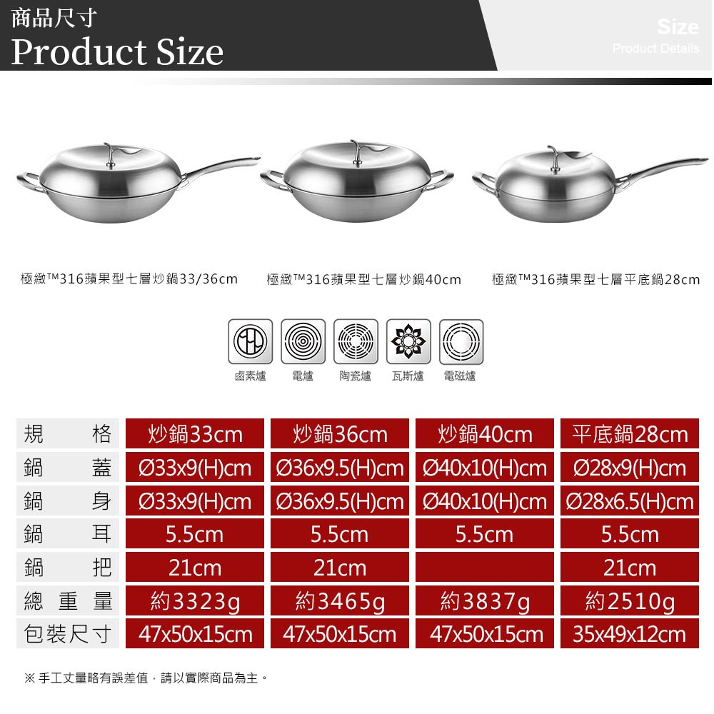 七層複合金材質,鍋身內層採316不銹鋼