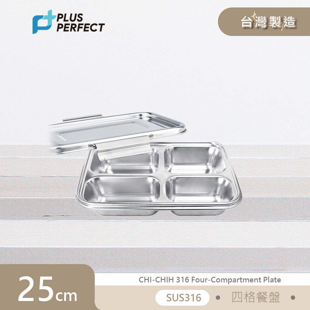 PERFECT 理想 極緻316不銹鋼四格餐盤25cm(附蓋)【 SJ-2420025】台灣製造