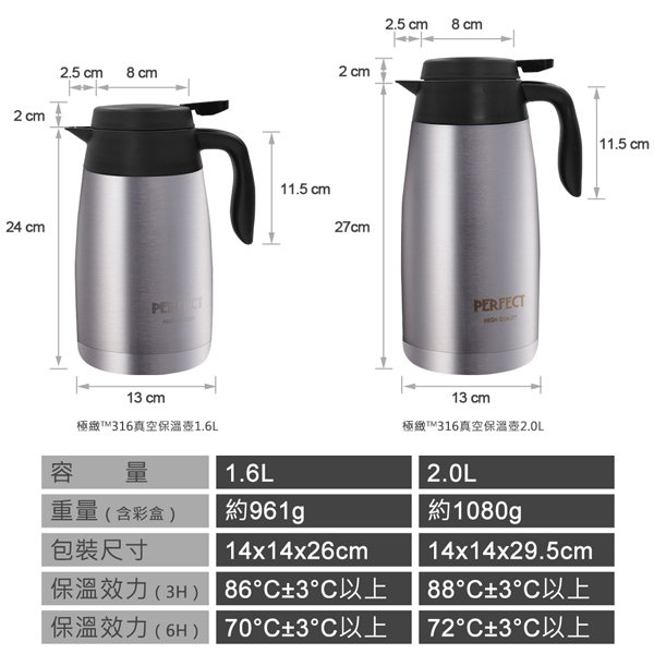 PERFECT 理想 【IKH_75116】 PERFECT 理想 極緻316真空保溫壺1.6L 【IKH_75116】台灣製造