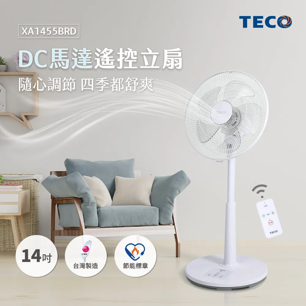 【TECO東元 】14吋DC馬達遙控立扇 XA1455BRD
