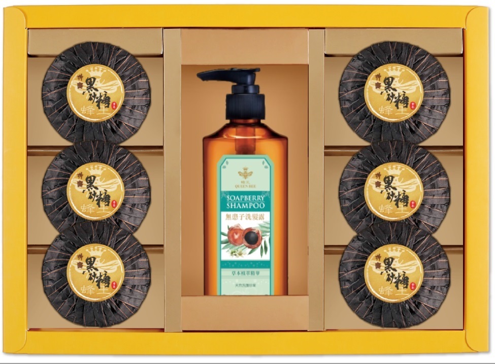 蜂王 黑砂糖香皂6入+無患子洗髮露禮盒 D1861
