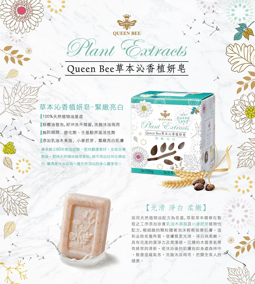 • 品名 : 草本沁香植妍皂 (小麥胚芽-緊緻亮白)