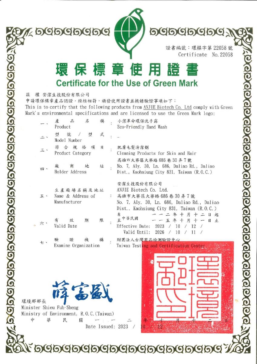 環保標章商品 證書編號 #22058