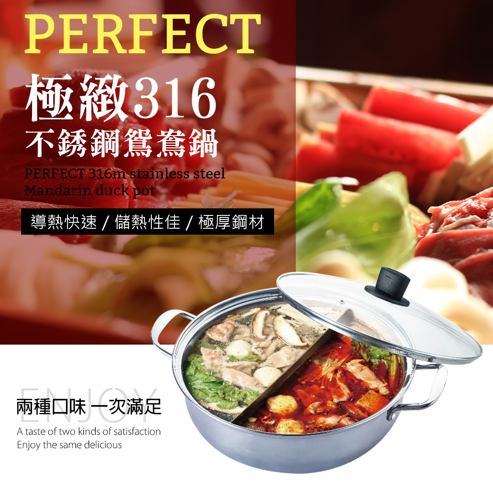 PERFECT 理想 極緻316鴛鴦鍋30cm附蓋 【KH_35130】台灣製造