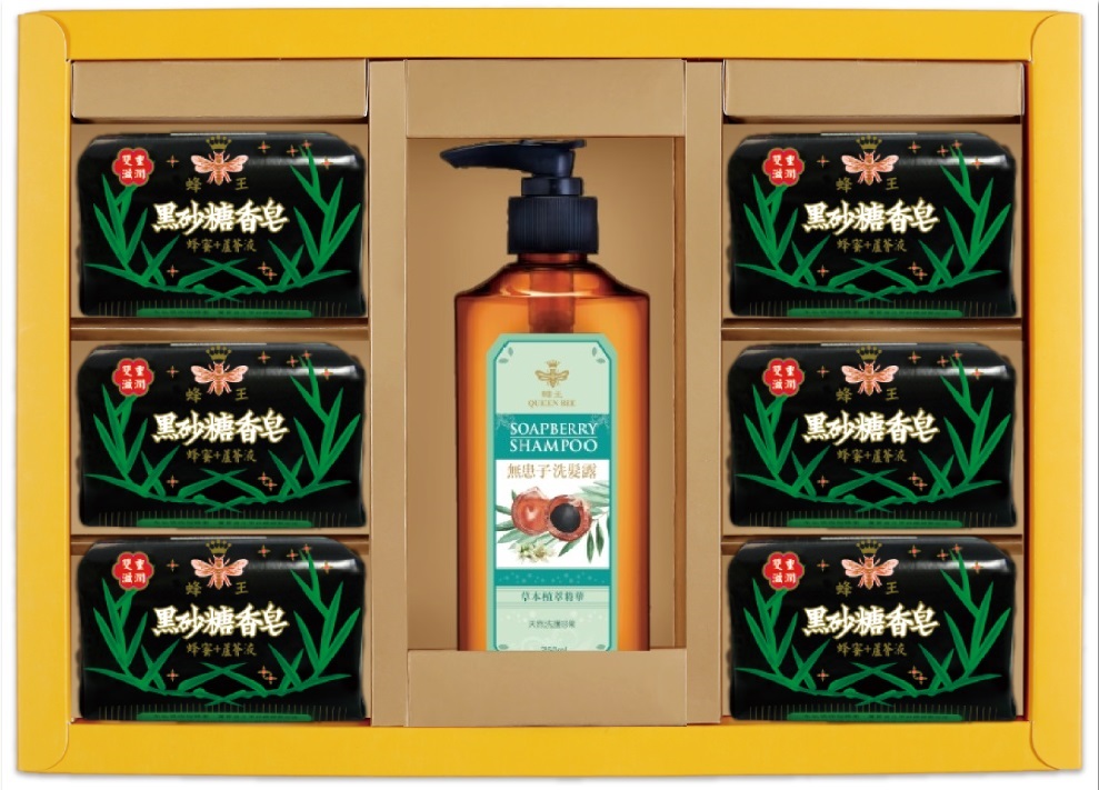 蜂王 黑砂糖香皂6入+檀香洗髮精禮盒 D1861