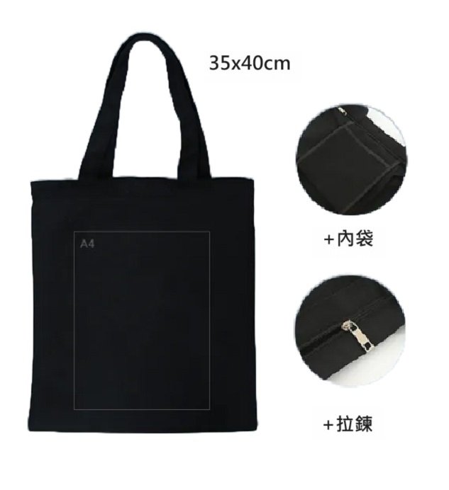 TC3540ZUB 黑色12安帆布袋35x40cm+拉鏈+內袋 (無底無側)直款