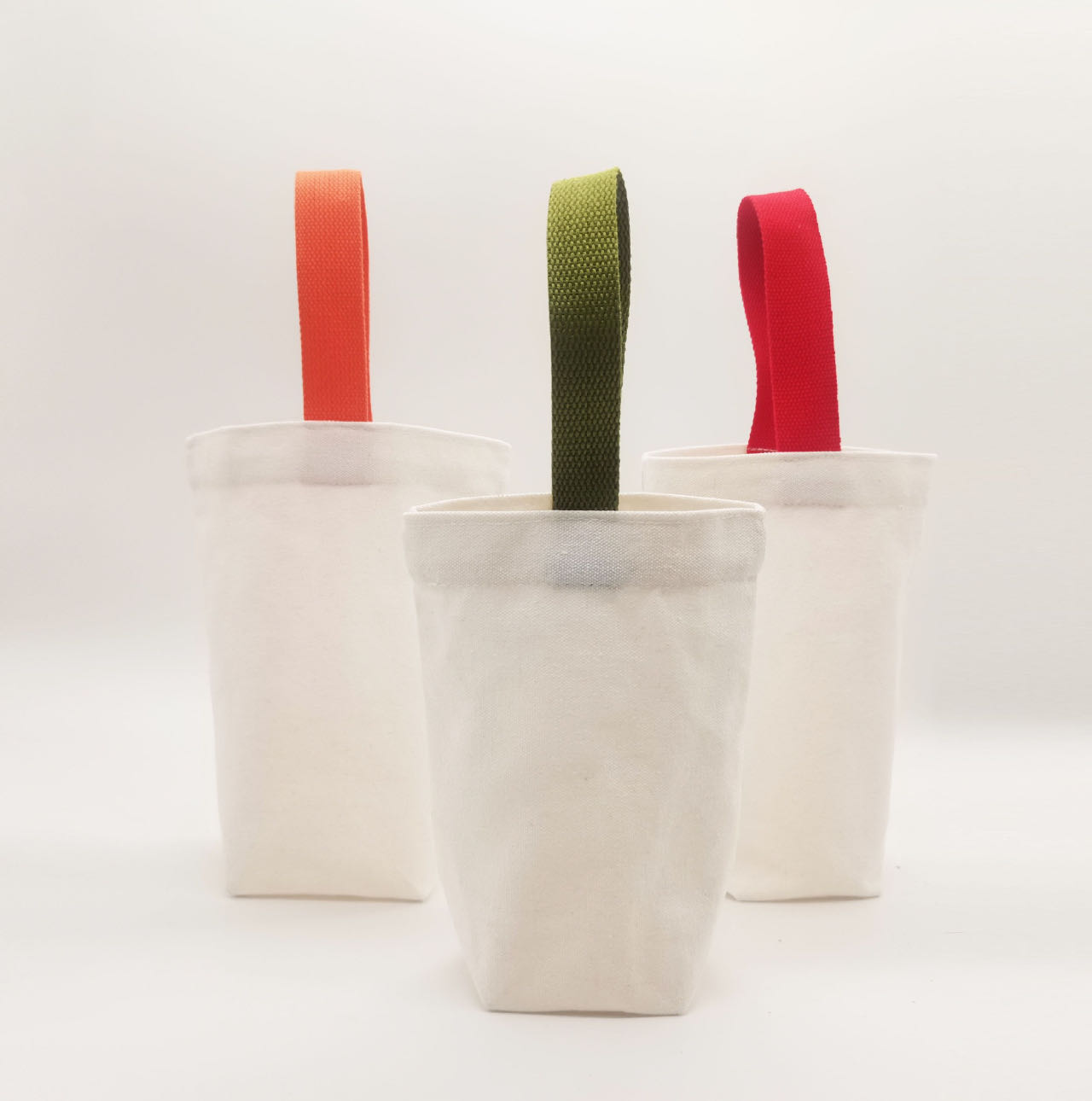 TC212310C彩色織帶手提12安帆布雙杯袋21x23x10cm