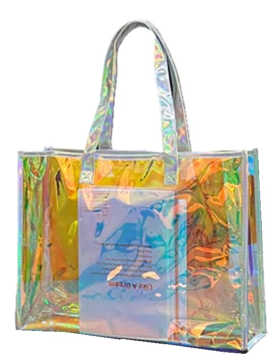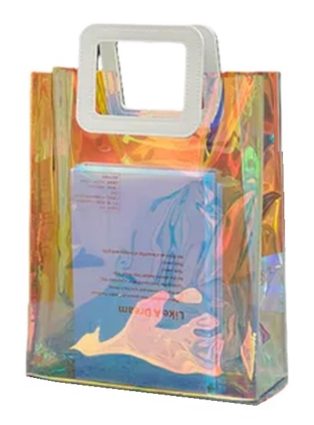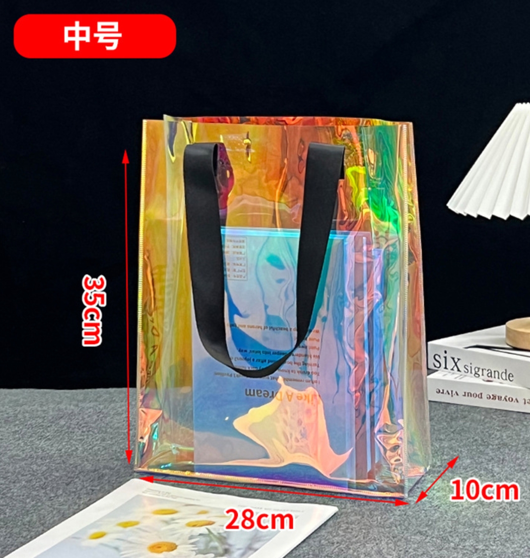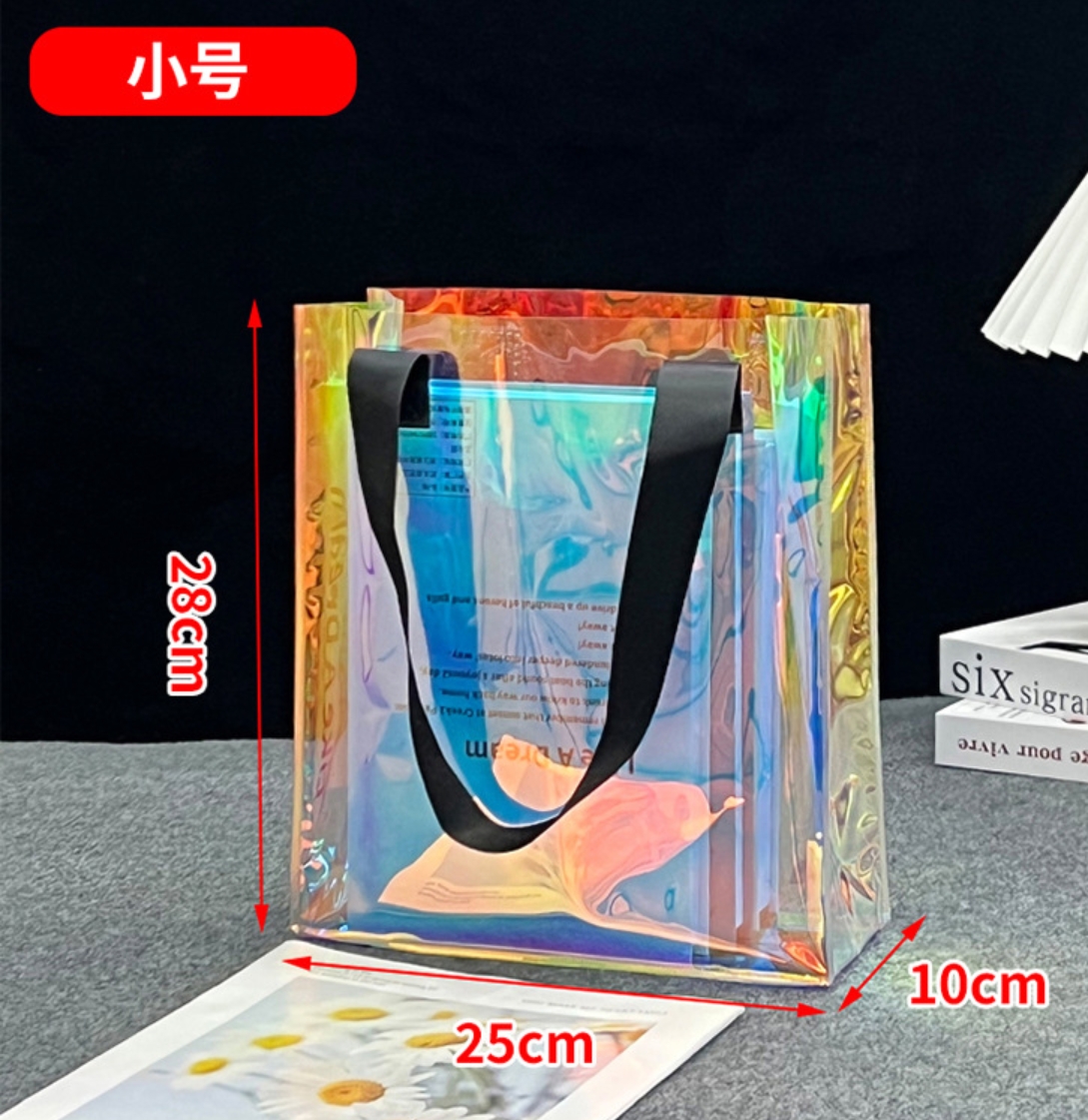 TV343010A PVC雷射炫彩手提袋(包邊手提)橫款中號 34x30x10cm
