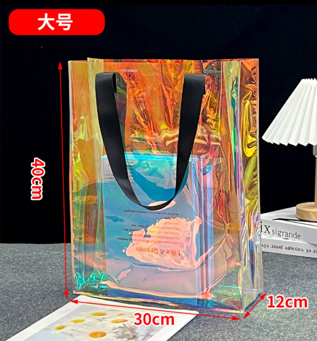 TV343010A PVC雷射炫彩手提袋(包邊手提)橫款大號 40x30x12cm