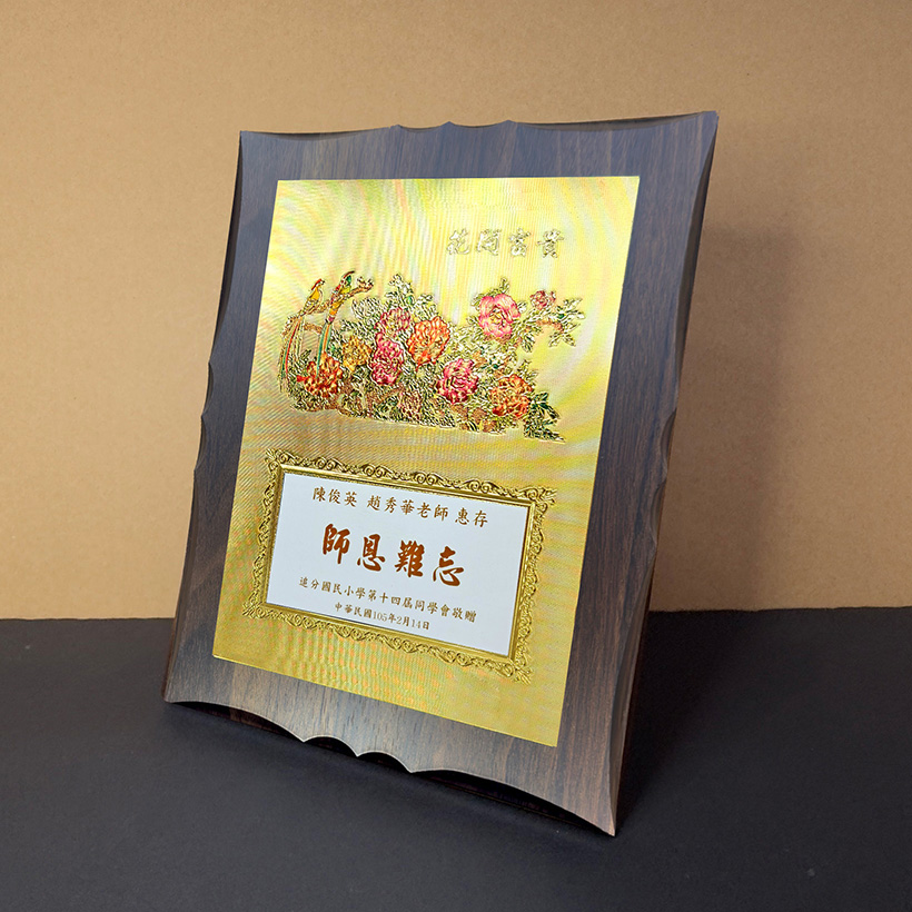 製作方式:花開富貴浮雕飾金+銀色銘版