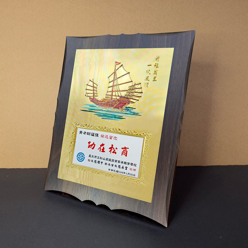 製作方式:一帆風順浮雕飾金+銀色銘版