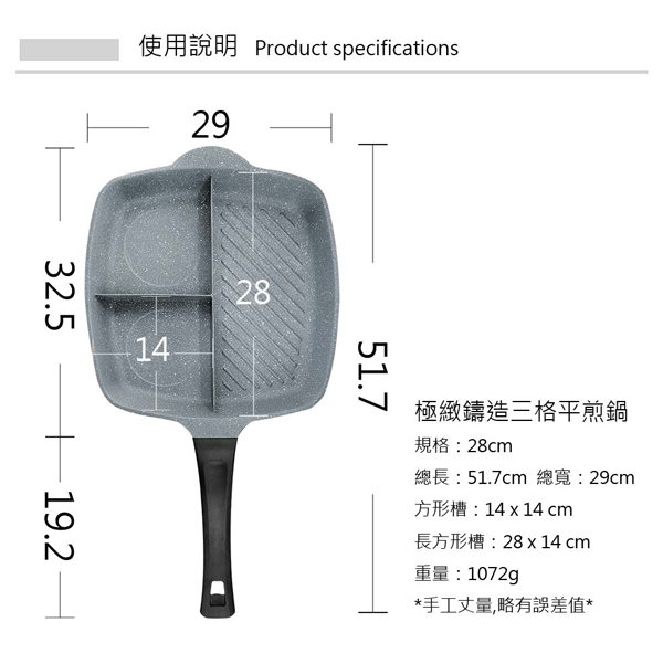 PERFECT 理想 【SJ-2550028】 PERFECT 理想 極緻鑄造三格平煎鍋28cm(無蓋) 【SJ-2550028】台灣製造