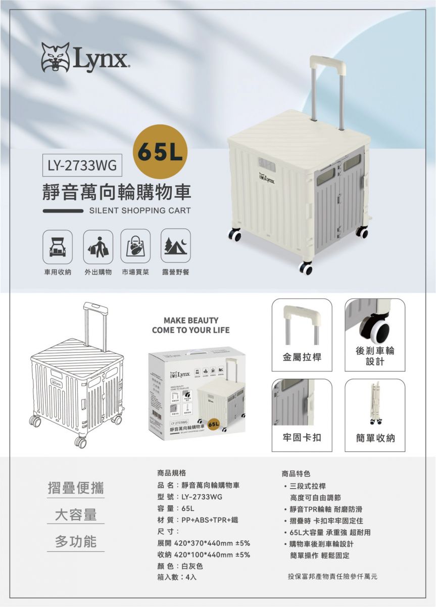Lynx 靜音萬向購物車65L LY-2733WG