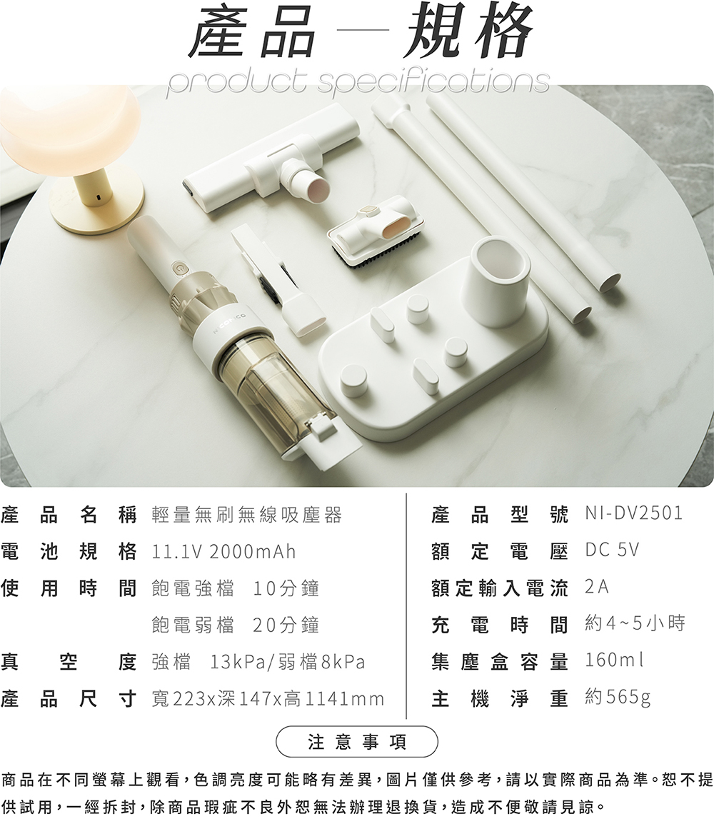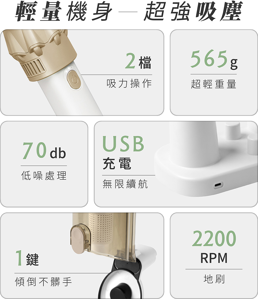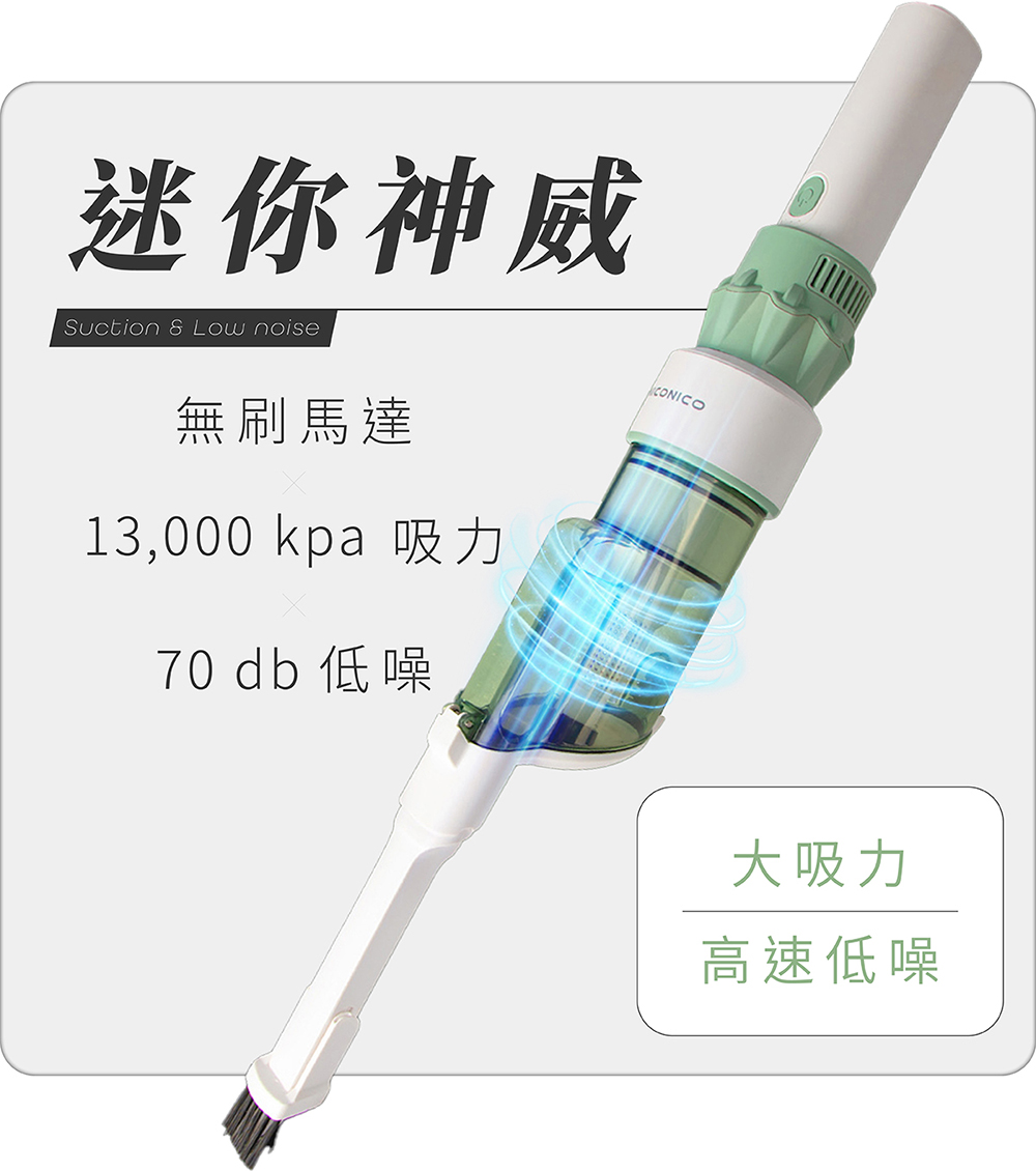▲無刷高速馬達,13Kpa強勁吸力 ▲輕羽量機身,小巧輕便 ▲旋風式吸塵,靜音持久耐用 ▲多重過濾系統,髒污層層分離 ▲兩段吸力模式,自由切換 ▲無線設計自在吸塵不牽絆 ▲搭配多款刷頭,靈活搭配運用 ▲充電收納底座,整齊擺放不遺失