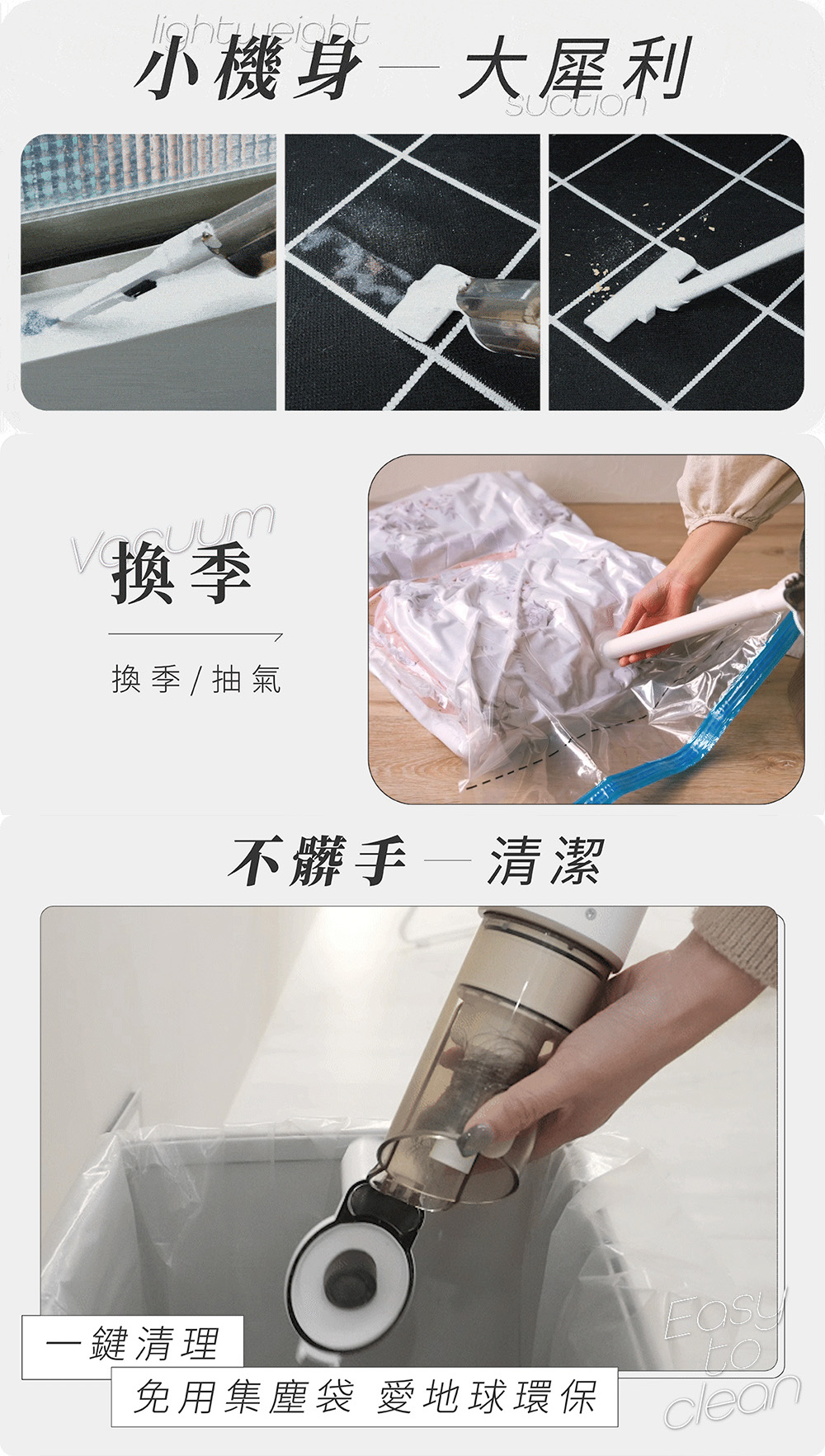 無線設計自在吸塵不牽絆/輕羽量機身,小巧輕便
