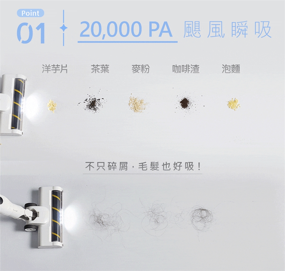 無線設計自在吸塵不牽絆/充電x收納x集塵,專屬底座/無刷高速馬達,20Kpa強勁吸力