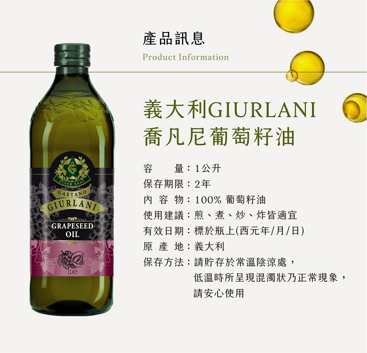 品名:義大利GIURLANI喬凡尼葡萄籽油