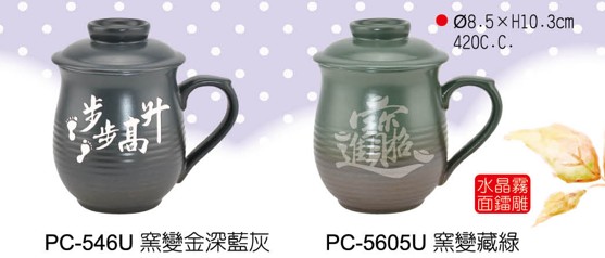 PC-5605U 磁炭窯變濾蓋杯-藏綠 鐳雕杯