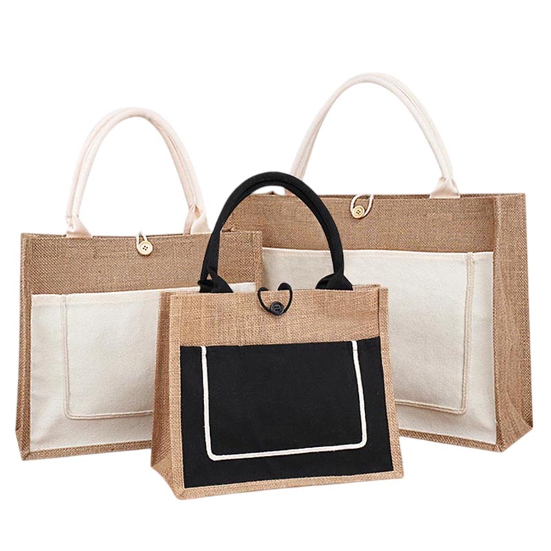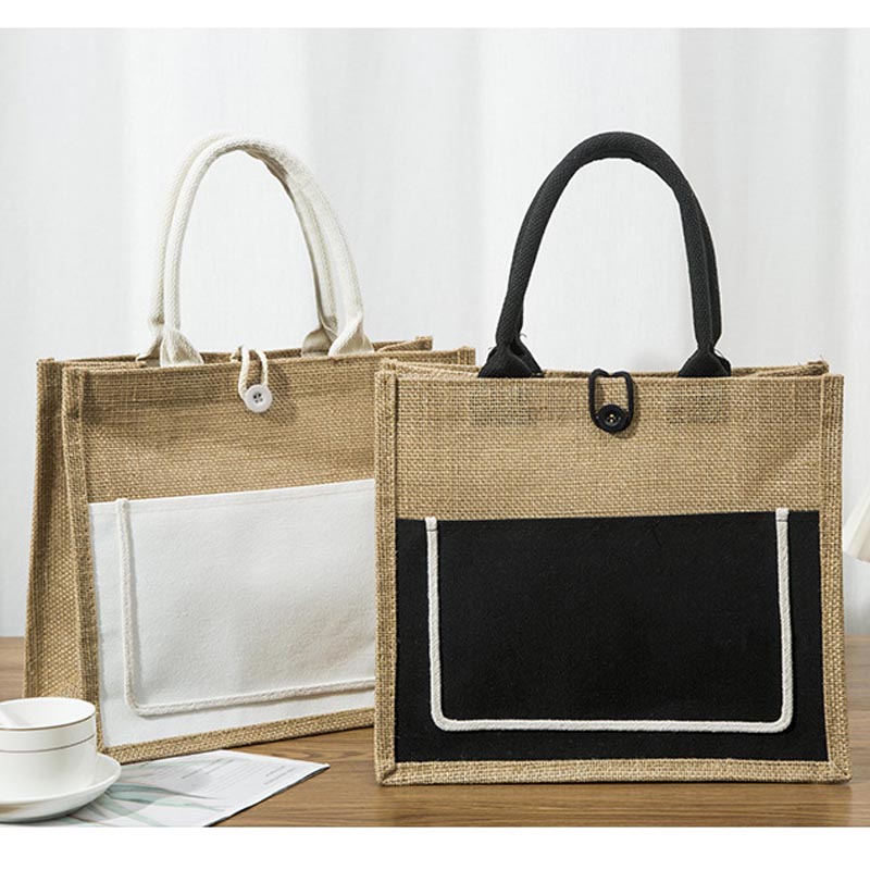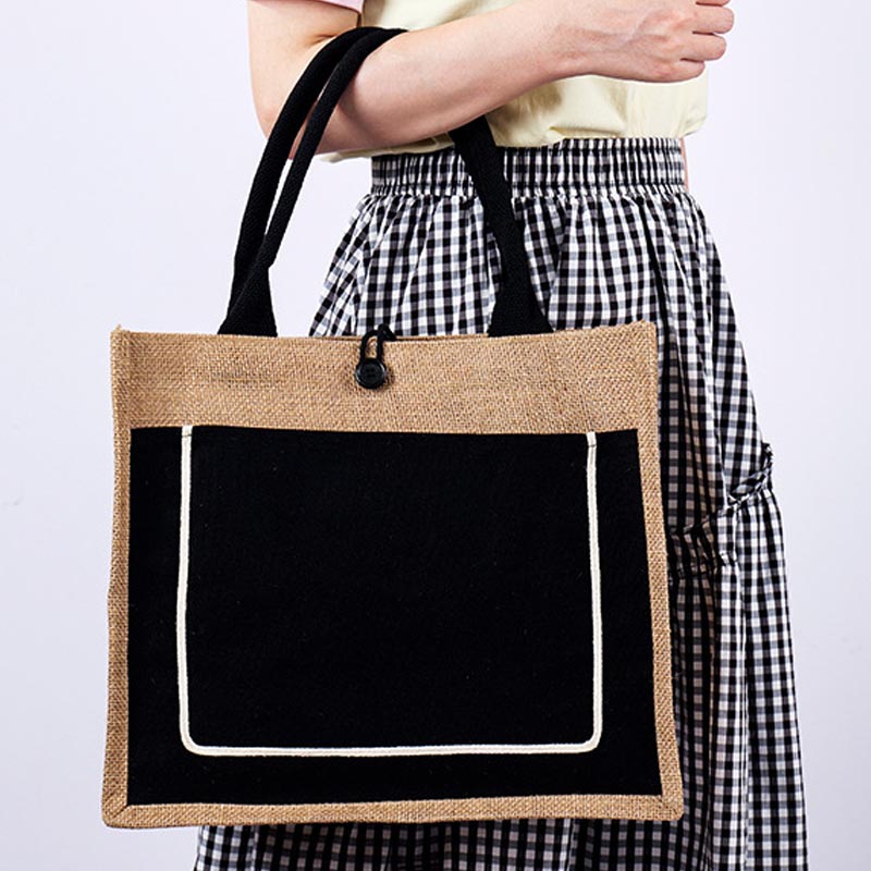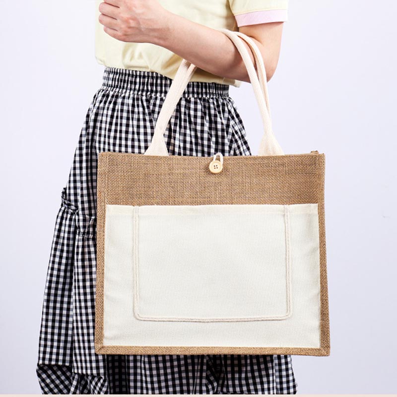#13 B5亞麻雙色有口袋提袋【26-2611】UA-GN