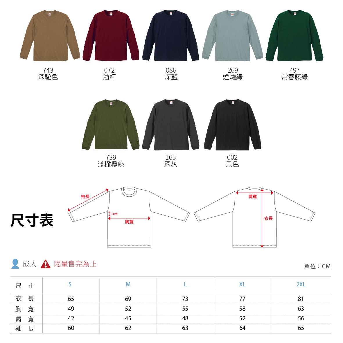 ※本商品為素色商品,不含印刷。若要客製印刷請聯絡客服! ★ UA5011-01 ★ 5.6oz 頂級柔棉長袖T恤 ★ 棉100% ★ 與5001-01同款 ★ 五件起訂(貼身衣物如未確單恕不接受套量) ★ 客製化費用另計,歡迎來圖詢問 ★ 訂購前請詳閱訂購流程及注意事項 ★ 同款式衣服(空衣不含加工費用)不滿5000元需自付運費