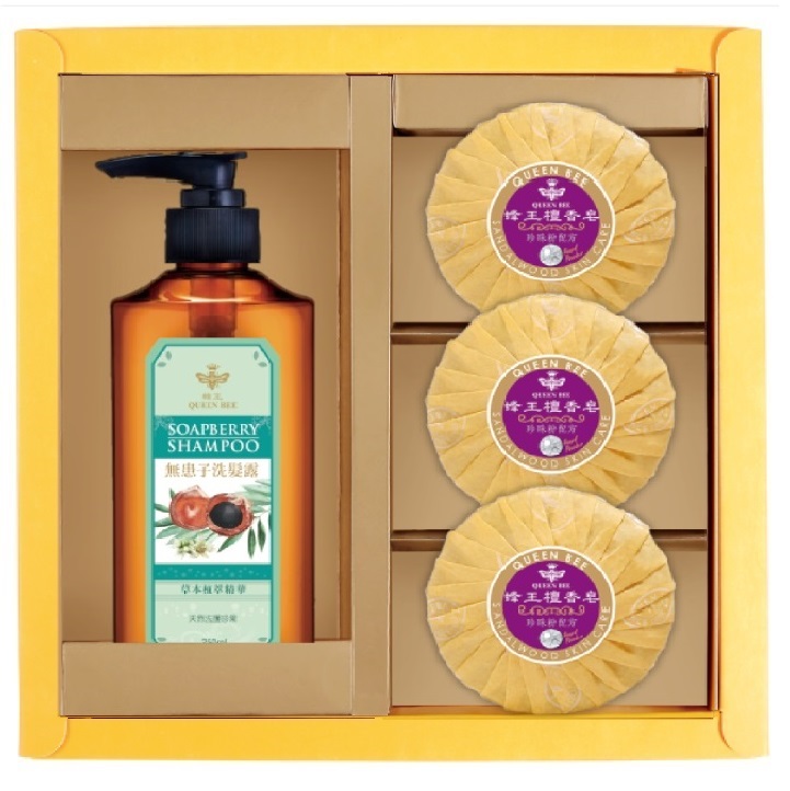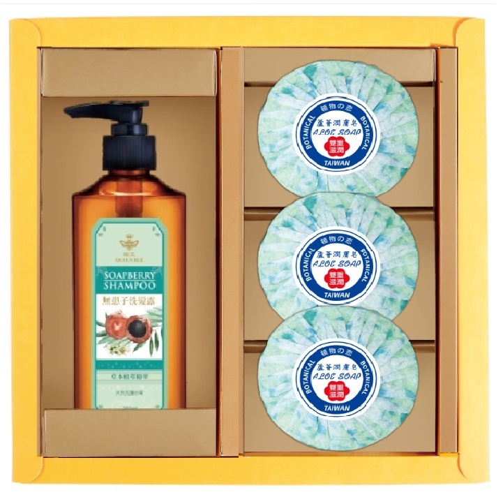 蜂王 無患子淨白皂3入+無患子洗髮沐浴2入禮盒 SC-0302