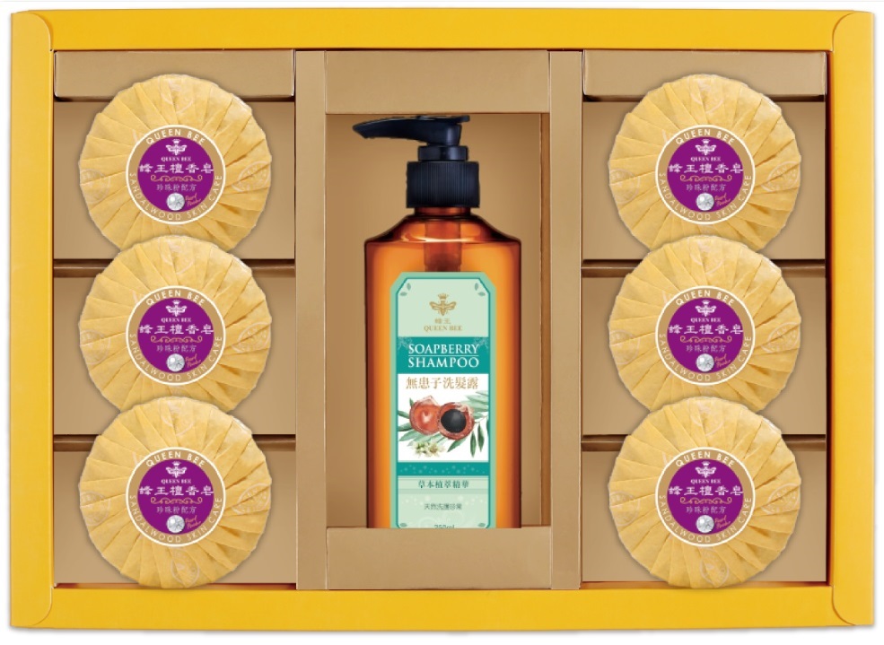 蜂王 珍珠檀香皂6入+檀香洗髮精禮盒 D2161